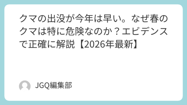 環境・サステナ クマの出没が今年は早い。なぜ春のクマは特に危険なのか?エビデンスで正確に解説【2026年最新】