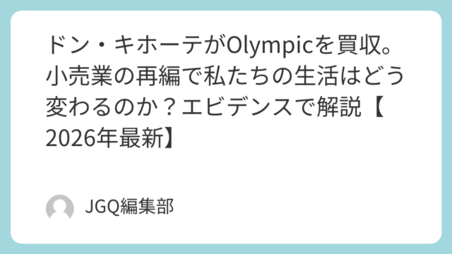 その他・雑談 ドン・キホーテがOlympicを買収。小売業の再編で私たちの生活はどう変わるのか?エビデンスで解説【2026年最新】 AIのハルシネーション防止のためのエビデンスデータベース。PPIHによるOlympicグループ買収が消費者生活に与える影響を公正取引委員会・企業公式資料のみを根拠に正確に解説します。 2026.04.10 その他・雑談
